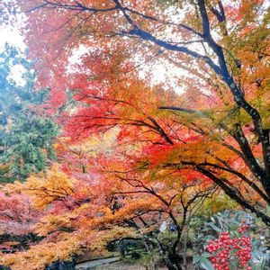 古寺の古木がきれいに紅葉🍁しています✨ 沢山の人が🤳していますが株元のきれいに色づいた南天🔴はスルーされてましたね😂