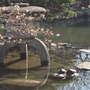 おはようございます☀ 朝犬の散歩に行ったら、亀🐢さん2匹が甲羅干しをしながら花見をしてました🌸🌸