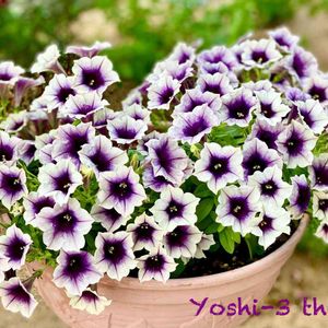 ❀︎ぺちゅにあ パワーストーン アイオライト❀︎ モリモリになってきました♪ 5/15にupした寄せ植えのアイオライトから挿し穂にしたものです。 ヤシマットのハンギングプランターに寄せ植えした、元の苗の方は花付きが良くなくなってきているのですが、こちらは茎も太くしっかりしていて、たくさん咲いてきてます❗️ 親より子の方が元気!花も人も一緒かな⁽⁽٩(๑˃̶͈̀ ᗨ ˂̶͈́)۶⁾⁾
