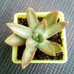 先日の薄曇り続きの日に徒長したブロンズ姫。 勇気出してちょんぱして、回復促進中です。 やっと根っこ出た! がんばって、ギュギュッとムッチリと戻ってほしいなぁ〜