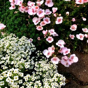 ハーフ&ハーフ😊 通路の両サイドにアリッサム&ディアスキア咲いています🌸 ディアスキアは春からずぅーっと満開状態です😸
