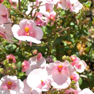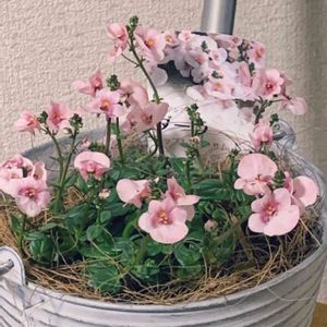 昨日、花好きのお友達と園芸店で見つけたお花⋆*❁* 二人で一目惚れしちゃったので、オソロで迎えました。 名前は… ♡ ディアシア ダーラ アップルブロッサム ♡ 長い間開花し 夏にも冬にも強いそうです。 淡い色とちょっとネメシアに似た花姿 が可愛いです〜(✿´∀`✿)