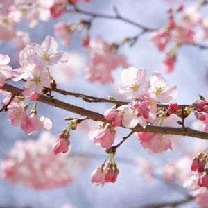 サクラ/ジンダイアケボノ(神代曙) スマートな樹形とほんのりピンク💓 ソメイヨシノが咲き出す前に、咲き出していました♪ 寿命の短いソメイヨシノに代わる桜として 、これから期待されている桜のようです🌸 親は染井吉野(ソメイヨシノ)と同じ親のオオシマザクラとエドヒガンの交配種🌿