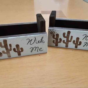 かまぼこ板のウッドプランター ステンシル大失敗😢 木目に白でステンシルをして大失敗➡️白で塗りつぶし➡️茶色でステンシル大失敗😱😱😱 インクを少なくしたら奥までスポンジが届かなくてぬれない… 多くしたらドボドボで滲む😅 もう不器用すぎて困る~(--;) 結局油性ペンで手書き😁 ステンシル難しい😢 スポンジが悪いのかな?? コツ教えてください😆