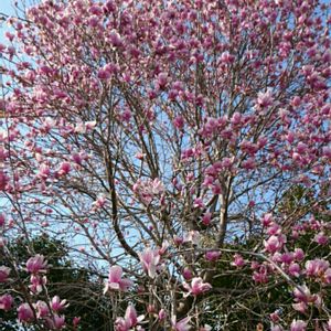 お散歩道で見付けたピンク色のモクレン🌸大きな木で目立っていました♡( •ॢ◡-ॢ)✧˖° ♡側に行って見上げると青空とお花が重なって素晴らしい景色でした!