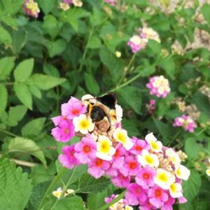 ランタナと、 おしりがキュートなオオハナアブ💓 せめて横顔を〜💕