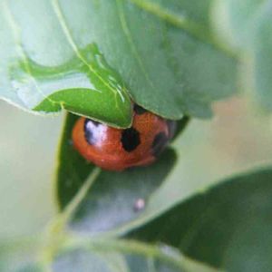 これも、センダンの葉陰で雨が上がるのを待つナナホシテントウ🐞 赤い所がなんとなく透けて、ミニトマトの表面に似てた😃