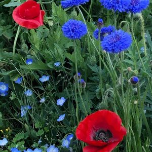 大花壇では、ヤグルマソウ、ポピーが咲いてきています。 大花壇 2022.5.3 里山ガーデンフェスタ2022