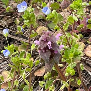 オオイヌノフグリの間からヒメノオドリコソウがでてきた。