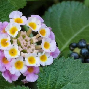 夕方のウォーキングで見つけました 🌿ランタナ🌿黒い実をつけていました(*^^*) もう秋なのね‥‥