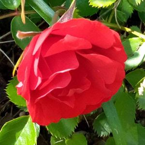 通りすがりに見かけました、赤い花☺️ (花の名前は不明です?🤔🙇♀️) 日差しに照らされ、元気に綺麗(きれい)に咲いていました😄 2022/05/11(水)午後・曇りのち晴れ☀️ スマホ📱で撮影しました☺️