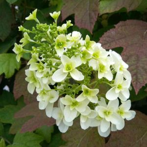 通りすがりに見かけました、白いアジサイの花☺️ (スマホ📱で検索しますと、カシワバアジサイと出ました🙇♀️) 夕方でしたが、元気に綺麗に咲いていました😄 2022/05/16(月)夕方・曇り スマホ📱で撮影しました☺️