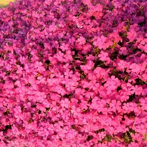 (今日のお花) 通りすがりで見かけました、歩道脇の花壇に咲いていました芝桜(シバザクラ)☺️ 夕日に照らされ、元気にキレイに咲いていました😄 2022/04/19(火)17:54.晴れ スマホ📱で撮影しました☺️