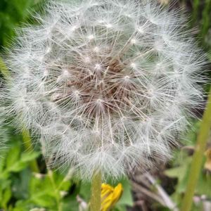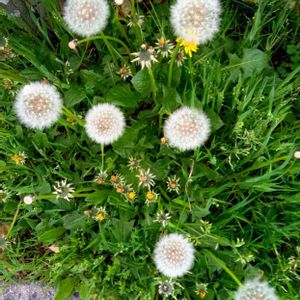 通りすがりに見かけました、道路沿いの畑のタンポポの綿毛☺️ 綿毛が今にも飛び立ちそうでした😄 綿毛をよく見ますと、丸くてキレイな形をしていますね😃 2022/04/15(金)15:23.曇り スマホ📱で撮影しました☺️