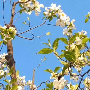 通りすがりに見かけましたハナミズキの花☺️ 青空に映えてキレイに咲いていました😄 2022/04/19(火)17:27.晴れ.風強い スマホ📱で撮影しました☺️