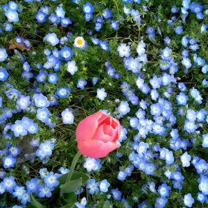 ネモフィラとチューリップ🌷☺️ 通りすがりの歩道脇の花壇に咲いていました☺️ 2022/04/19(火)16:56.晴れ.風強い スマホ📱で撮影しました☺️