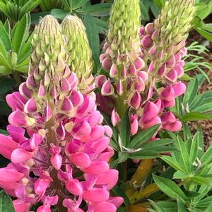 ピンクのルピナス2番花 四つ子ちゃんです 一度にこんなに咲いちゃって 後が寂しいのに