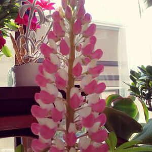 こんにちは(^_^)v 窓辺のルピナス(ピンク)ほぼ満開なので皆さんにお披露目です。✌