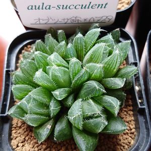 ハオルチア紹介 オブツーサ錦✕べヌスタ こちらもアウラサキュレントさんから アウラサキュレントで実生から作られた苗 錦が混じってるからそのうち出てこないかなー? もちろん、イベント苗で最後まで勝ち残りお安く(σ´∀`)σゲッツ!! いつもイベントでは勝ち残れないので、初の勝ち残りの記念苗🍀 全部で5頭の群生 ん!?鉢ごと送ってもらったけど、これ以上もりもりになると、植え替えが……o(>ω< )oヤダヤダ!!o( >ω<)o ハオルチアの根は長く伸びるので、良い苗にしていくには長めの鉢に入れないといけないらしいよ😅 蘭の鉢くらいしかないけど…… 少しモケモケ😍 ハオルチアの葉の先透明な表面を「窓(まど)」、裏側を「裏窓(うらまど)」、窓に入っている模様を「条理(じょうり)」と言うらしい。