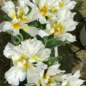 チューリップ ホワイトバレー🌷 最終章😊 ぱっかーんと開ききっています😄 もう チューリップとは思えない姿が なんとも言えないくらい可愛いです💕 次のシーズンはチューリップ増やそうかな🌷🥰
