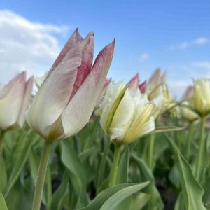 2023新潟県産チューリップ展示品種🌷 MIX フレミングピューリシマ 早生中型一重咲 白桃 ホワイトバレー 早生八重咲 白