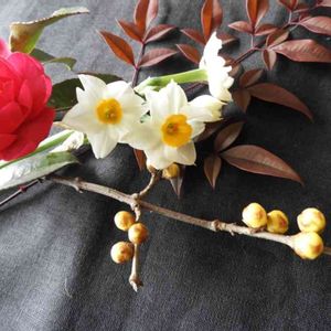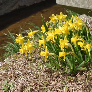 歩道沿い うちは日本水仙 お隣さんはミニラッパスイセン?が みんな考えること一緒😁