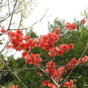 裏山の大暴れの木瓜もみごろ♪ 赤と言うよりアプリコットっぽい色 素敵な色です✨