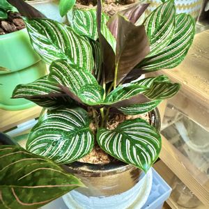 2023.秋頃 購入(GGG) 2024.春 ねこチップLに植え替え/5号鉢 一目惚れ🤩 カラテアに色んな種類がある事を知ってここからカラテアが好きになりました😊 メモ📝 ねこチップLは大きいカモ🦆⁇ Mでも良かったのか⁇🦆