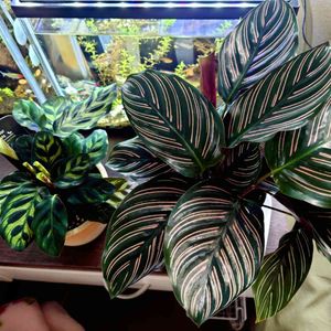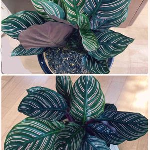 カラテア姫✨ 最近急に葉が数枚お亡くなりになり少し心配してましたが、どうやら葉っぱの世代交代の時期だったようです! 元気に新葉ラッシュ中です!🙌☺️