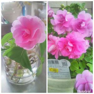 バラ咲きインパチェンス冬越しして カットして水に挿したら 根が出て花が咲いて~ 左側は今日📷 また華やかさを見せてくれるかも。 今日は 3枚も投稿しちゃいました♩*゜