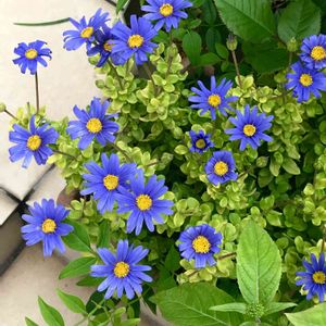 ブルーデージー ハニーブルー 5月に切り戻ししてから3ヶ月、また咲きだしました♪ 夏にぴったりのさわやかな青💙、 ライムグリーンの葉っぱが鮮やかです🌿