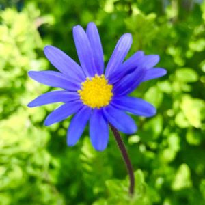 ブルーデージー ハニーブルー・*:..。o○☼*゚ オリエンタルブルーの舌状花の中に花開く、 王冠のような黄色い筒状花がおしゃれです✨ レンズを通すと素敵なものが見える時、ありますね💕 ぷくぷく弾けて、かわいいです💛💛💛