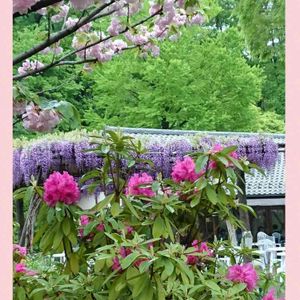 4/30(火)③ ぼたん園の 八重桜と藤の花とシャクナゲの花 春の庭園らしさが出てる1枚🎵