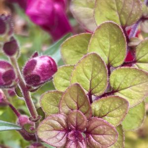 オレガノマルゲリータ 今の時期、ピンクになった葉が、 鮮やかです。 あおいちゃんの和装に纏わせました。