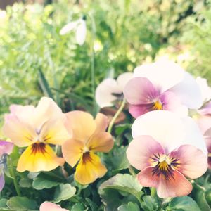 こんにちは...♪*゚ 2株のビオラさん( ˊᵕˋ*) 左の子は色々な色が咲いてます.°ஐ.* ニュアンスカラーやっぱり好きだな◡̈ スノードロップもお花がパカっと開いてまーす✧︎*。 地植えのクリスマスローズの開花はもう少しかなぁ¨̮⑅*