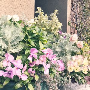 職場で頂いたお花を 家の花壇に植えました✿✿ いい感じにできたᐠ ♥︎ ᐟ
