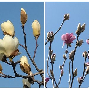 モクレン 左 ハクモクレン 別名は白蓮、白蓮華 右 シモクレン モクレンというとこのシモクレンのことをいう どちらも咲き始めました。シモクレンの方が少し遅いようです。 花言葉は、慈悲、自然への愛 今日は、東日本大震災から12年です。 鎮魂の意味を込めて投稿させていただきました。