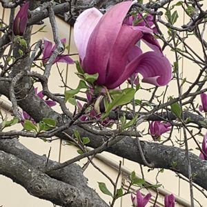 今日のお花❨モクレン❩ 綺麗なお色で、咲いていました✨🩷💜🩷💫 お庭のクリロー、チューリップも終盤✂して楽しみます🌷 アスパラ、巨峰も気温上昇で、グングン伸びたり、芽吹いたり…ガーデンが忙しく成って来ました💚💙🩵🍀