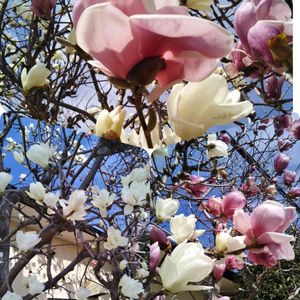 モクレン 鮮やかな色合いで 遠くからでも目立ちます💜🤍❤️🤍💜🤍❤️💜