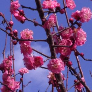 コウバイ ( 紅梅 ) 愛知県 お城まで 行くと 紅梅が 満開でした メジロが乗り 移るたび 花の枝が 震えて ステキでした!