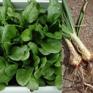 秋冬野菜 シュウ酸が少ないサラダほうれん草と細九条葱です。 手前は葱ではないですよ~🎶