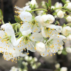 スモモ(李)の花🌸 「梅」が終わって「桜」が咲き出す寸前の ころに咲く五弁花🌸 早口言葉の……👄「スモモもモモも桃🍑のうち」のスモモです😊 又……[李下に冠を正さず]🍑疑われやすい行動はしない方が良い……の格言の李はこのスモモの実の事です‼️ 今我が家の前のお宅のスモモの花🌸が満開です🌸🌸 私はこの花🌸が咲くと何故か❤️期待してしまいます🍑 スモモの実💕💕チョット酸っぱくて美味💖酢桃とも書くのも納得‼️ 食いしん坊の私です🍑