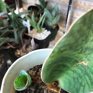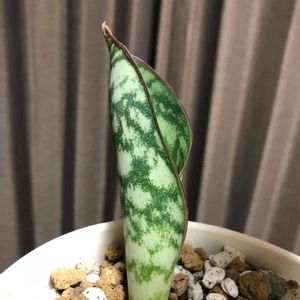 今日届いた斑入り交配種サンスベリア。 見直したらマッソニアと何かの交配種らしいです。 確かに葉が綺麗で少しデカいです^ ^ 来て箱を開けてみて、何やら破損したときの緑の青臭い(独特な匂い)がしたから確認したら1枚葉が取れかけてました。 まぁ、中途半端についていても腐るので取りました(あっさり取れた) 取れた葉は斑が消えるだろうけど勿体無いので葉挿ししてみます(*´ω`*)