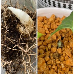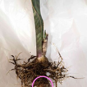 4ヶ月前に買って植え替えようと思って抜いてみたら・・・ 子株の小さいのが・・・(◯部)