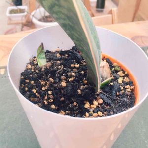 【葉っぱ1枚だけ。】 地元のドイナカホームセンターのサボテンコーナーで、葉っぱ1枚が突き刺さった変なの見つけた😆💦 なんだこりゃ😆💦💦 「サンスベリアの中でもレアです!」と札に書かれており、家に帰って1日考えてから先程お迎えに行った。植え替え完了。枯れずにいておくれ〜!