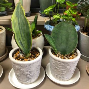 切り口を乾かして、素焼き鉢に植えつけて、株分け終了ー🤗 子株ちゃんたちかわゆいわー🤗 親たちも余ってた鉢に植え替えたから雰囲気変わっていい感じー🤗