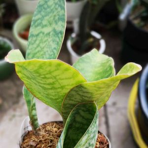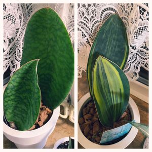 「サンスベリア マッソニアーナ斑入り」 子株が大きくなってきました! 完全に開かないと何とも言えませんが 親株よりキレイになりそうな感じがします たのしみに待ちたいと思います