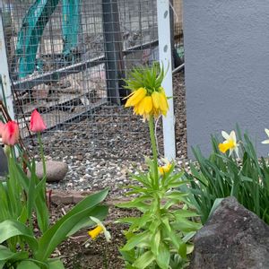フリチラリア(インペリアリス) 🌼🌸☘ 斬新な咲き方のお花ですね😊