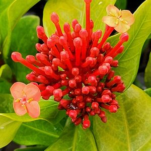 『サンタンカ』 お花屋さんで見かけたお花です。 よく見ると 赤いのがお花かと思ったら 更に可愛いお花が2つ咲いていました。 ってことは 赤いのは蕾…ってこと🤔 😅💦☺️👍💕💕💕 【花言葉】 熱き思い 喜び 張り切る