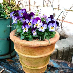 見切り品コーナーに居たビオラが沢山花をつけてくれてます😊 少し窮屈そうだったので鉢増ししてみました✨オキザリスもそろそろ咲いてくれる頃かな☺️